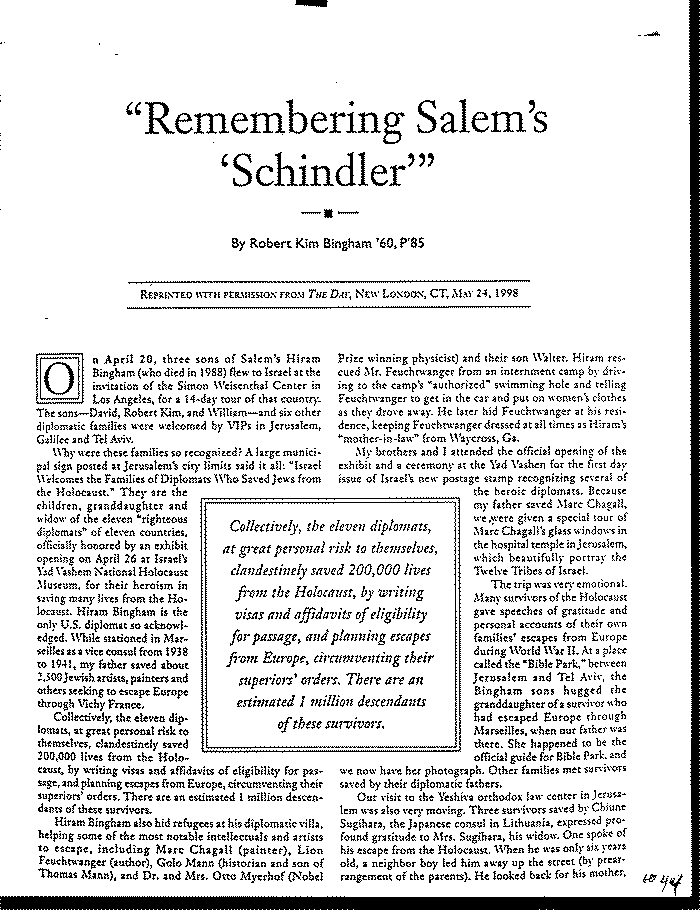 Bingham IV. His tree now stands in a row for the righteous diplomats