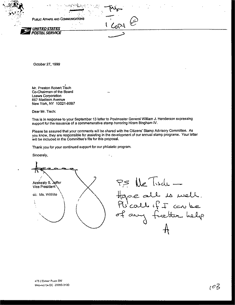 issuance of a commemorative stamp honoring Hiram Bingham IV.